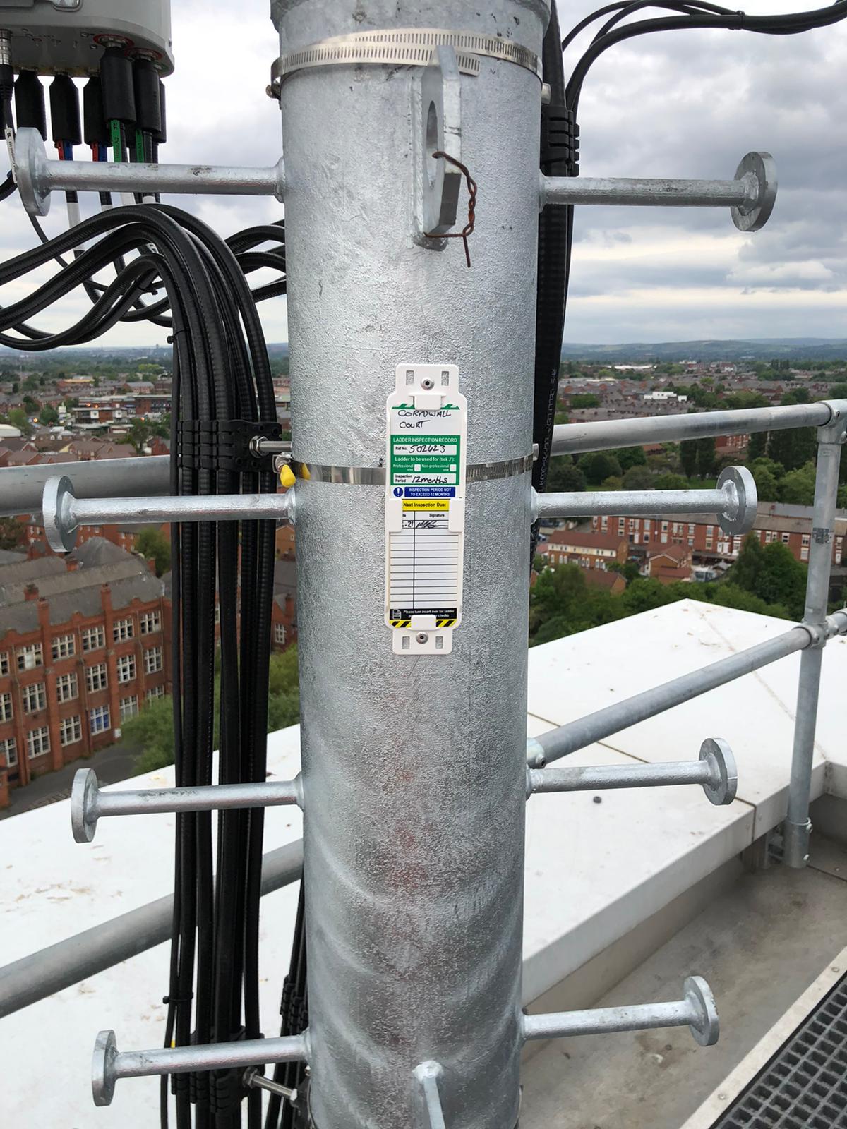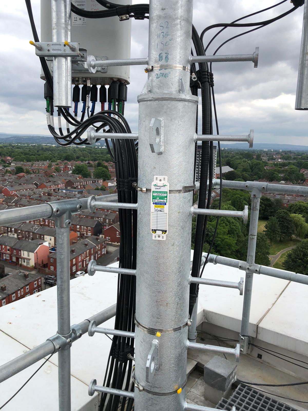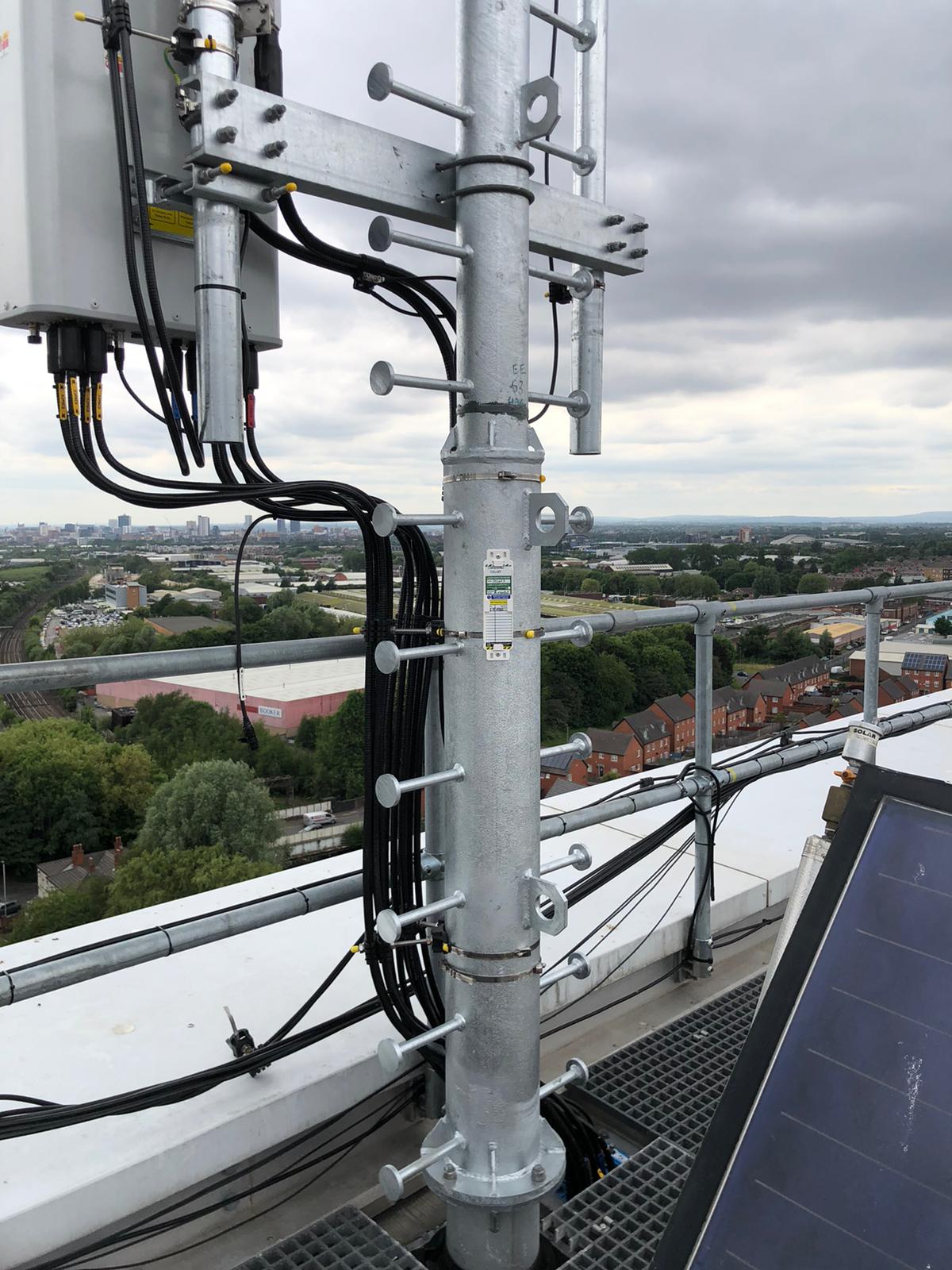 -Supply and installation of sector A antenna poles 2No- two lower sections fabricated from 193.7 x 10 mm wall with top section fabricated from 139.7 x 5 mm upper pole complete with splice plate connections secured to 2No- 200 x 100 x 6.3 mm RHS sections and support cleats, site drilled to existing 203 UC