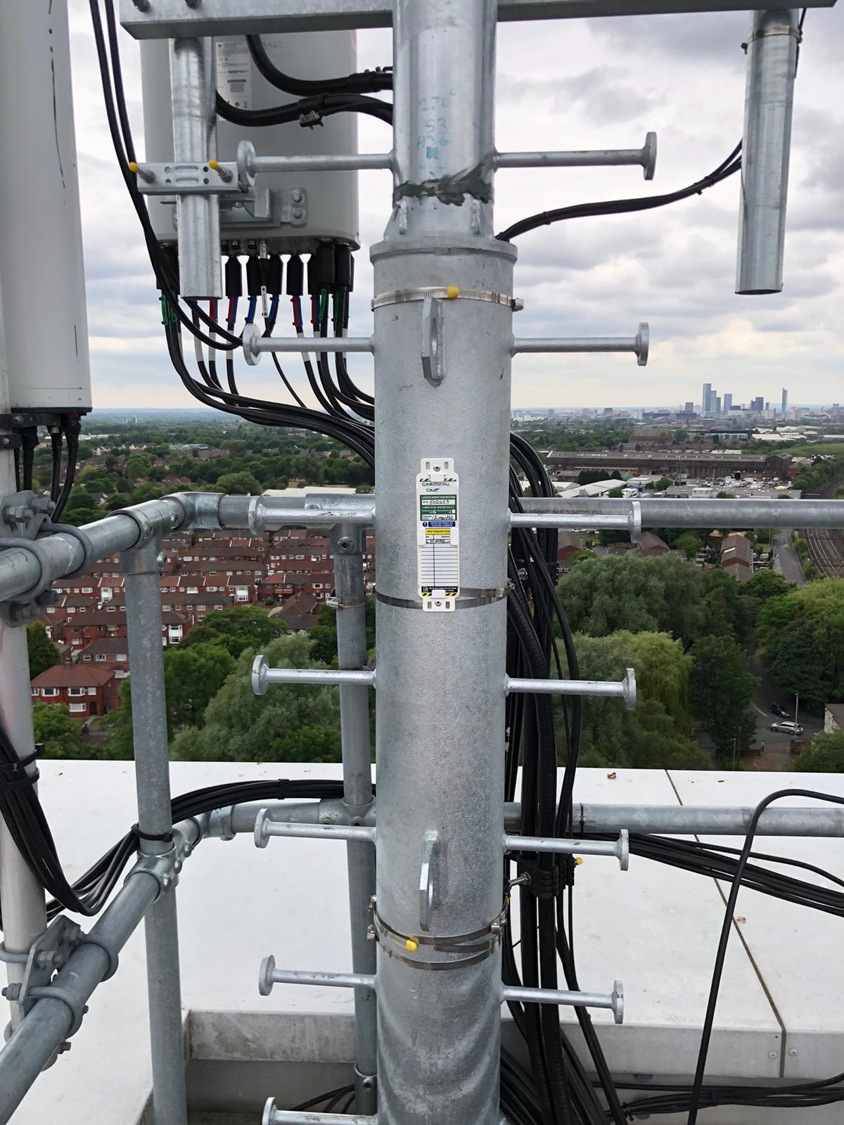 -Supply and installation of sector B antenna poles 2No- two lower sections fabricated from 193.7 x 10 mm wall with top section fabricated from 139.7 x 5 mm upper pole complete with splice plate connections secured to 2No- 200 x 100 x 6.3 mm RHS sections and support cleats, site drilled to existing 203 UC